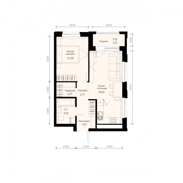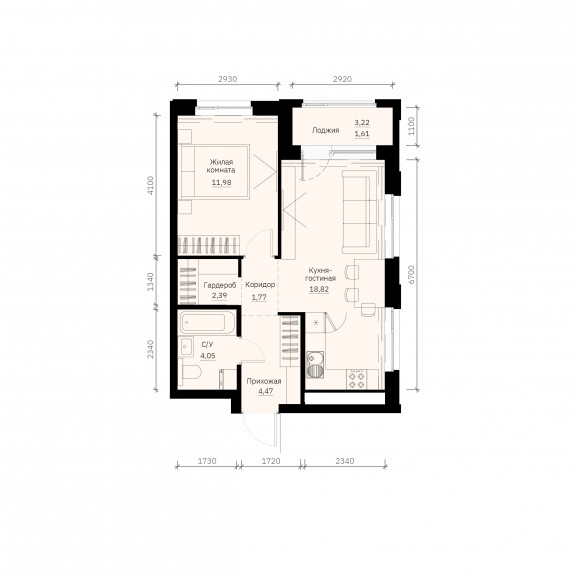 Однокомнатная квартира №209